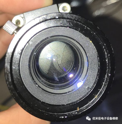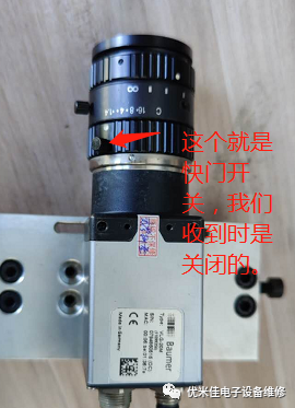 今天既然说到镜头没打开的问题,那么可能不常操作的工程师要问镜头怎么打开的?继续上图,如下图所示把箭头指向的螺丝旋开,然后左右旋转,你从上图就可以看到镜头开合了。