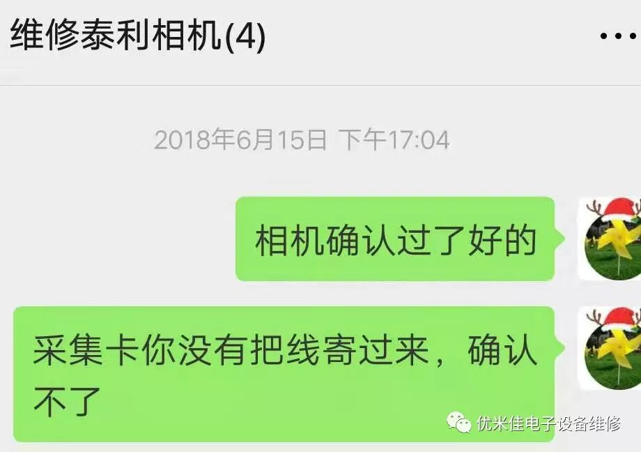 客户那边判断是泰利CCD工业相机坏了,寄过来后经过优米佳维修技术人员的确认原来问题是线坏了,工业相机和采集卡都不需要维修。