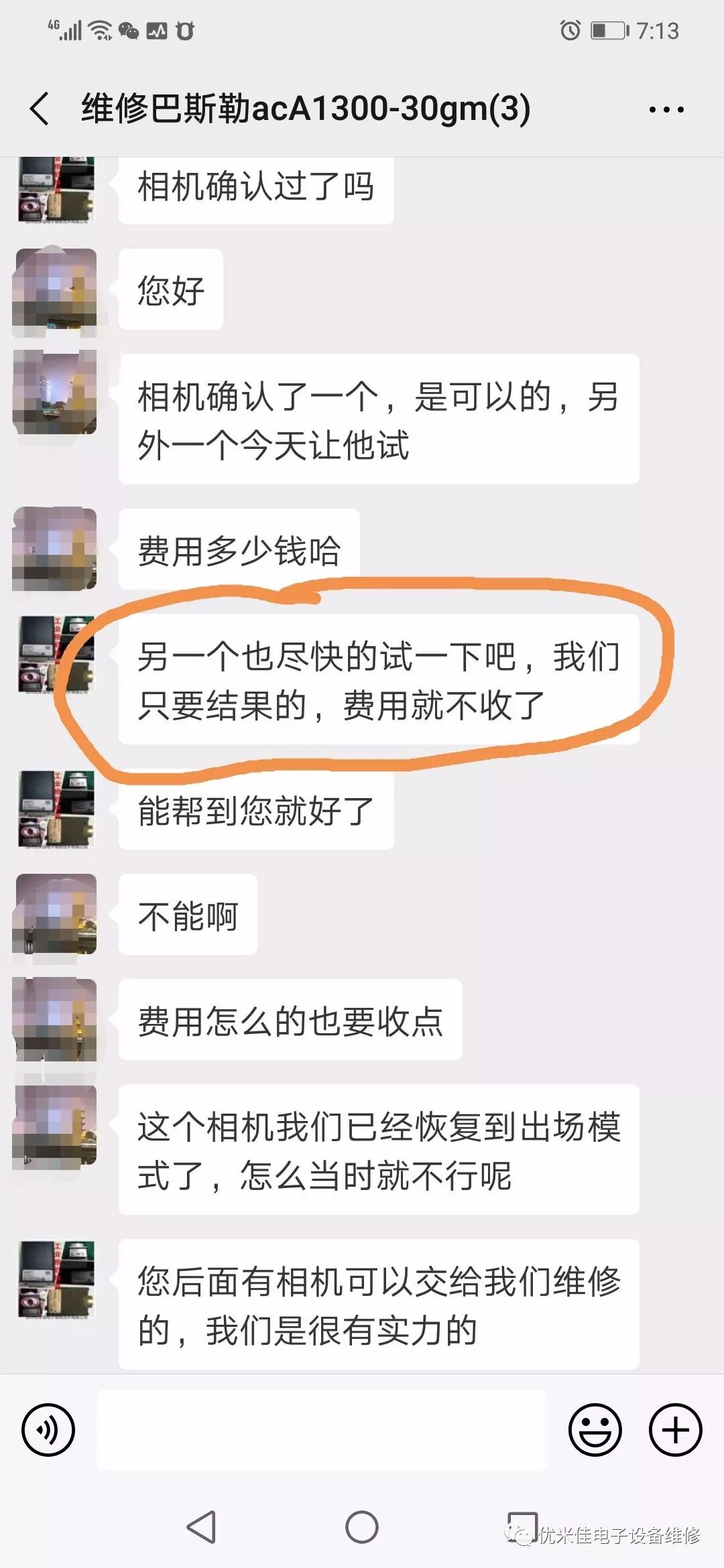 BASLER工业相机acA1300-30gm客户初始化了无法使用,找到优米佳维修客服一聊,觉得优米佳可以信赖,是专业维修工业相机的,于是我们通过对工业相机调试的手段,帮客户解决了他的问题,关键是“免费”。