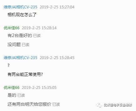 客户寄过来维修的工业相机JAI:CV-235其中有2台我们确认是好的,请客户再确认一下。